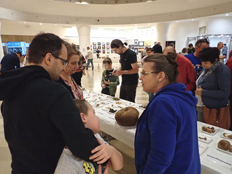 Hagyományos őszi gombakiállításunk keretében több mint 400 gombafajt mutattunk be az érdeklődő közönségnek. A száraz időjárás miatt be kellett vetnünk fagyasztva-szárított gombagyűjteményünk legszebb darabjait is. Természetesen nem tettünk le a friss gombák begyűjtéséről sem, a Magyarhoni Gombász Egylet tagjai és gombászbarátaink a körülményekhez képest sok friss gombát gyűjtöttek, és emelték ezzel a Magyar Természettudományi Múzeummal közös rendezvényünk színvonalát. A gombaszépségversenyre összesen 21 nevezés érkezett, a látogatók 564 szavazatot adtak le a szépségverseny jelöltjeire. A hagyományos fénymikroszkopizálás mellett idén elektronmikroszkópos bemutatót is tartottunk. Népszerű volt a gombafelismerési verseny, a gombatotó is, ahol a vállalkozó kedvűek 50 fagyasztva-szárított, gyakori gombafaj felismerésével tesztelhették tudásukat. Összességében jól sikerült hétvégét tudhatunk magunk mögött, a fizető látogatók száma a három nap alatt meghaladta a 2000 főt. Köszönjük!