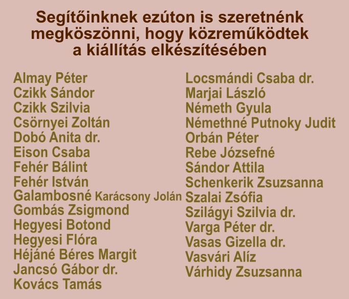 Az alább felsorolt személyeknek köszönjük, hogy gombát hoztak kiállításunkra, ezzel közreműködtek annak rendezésében!